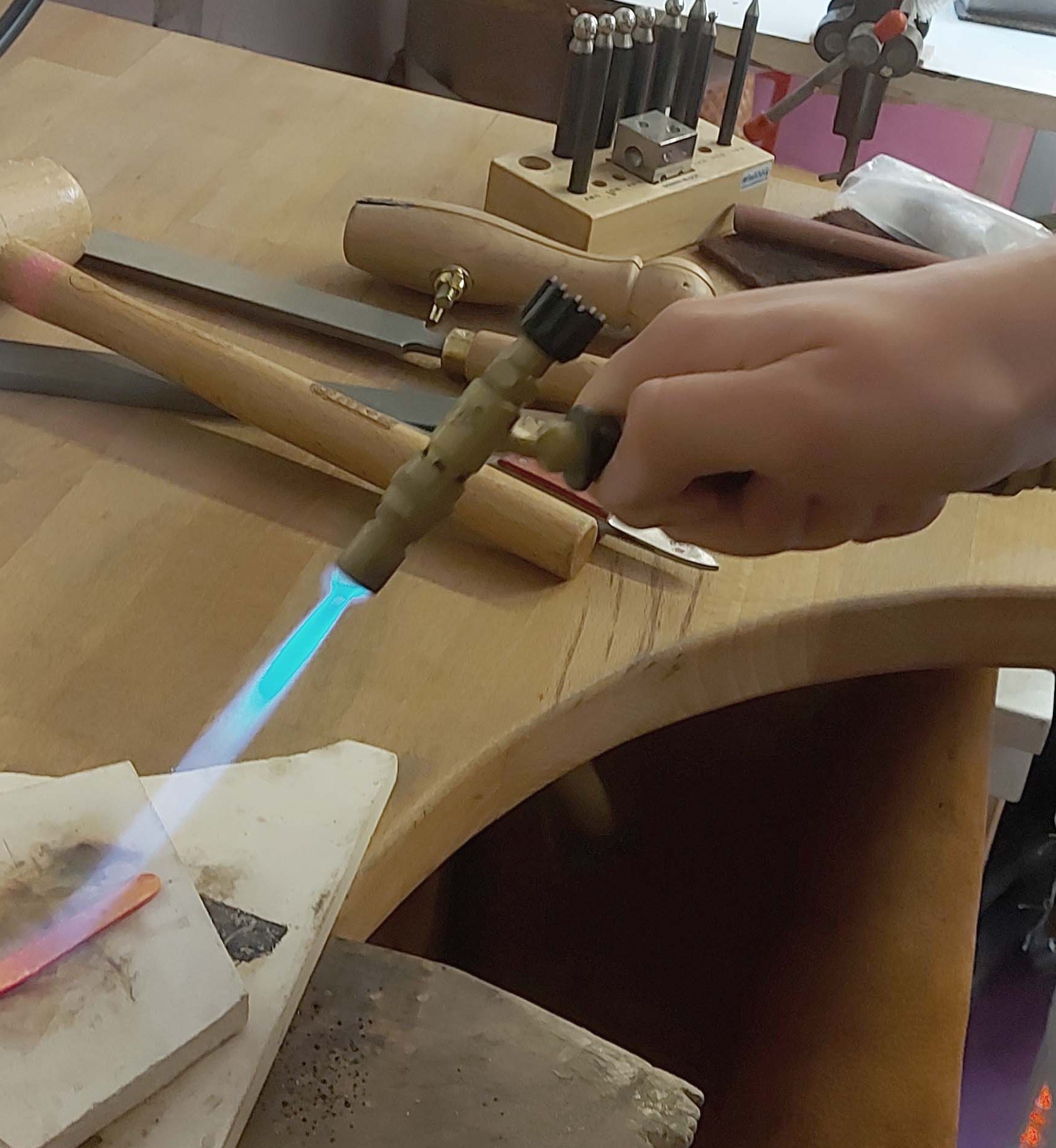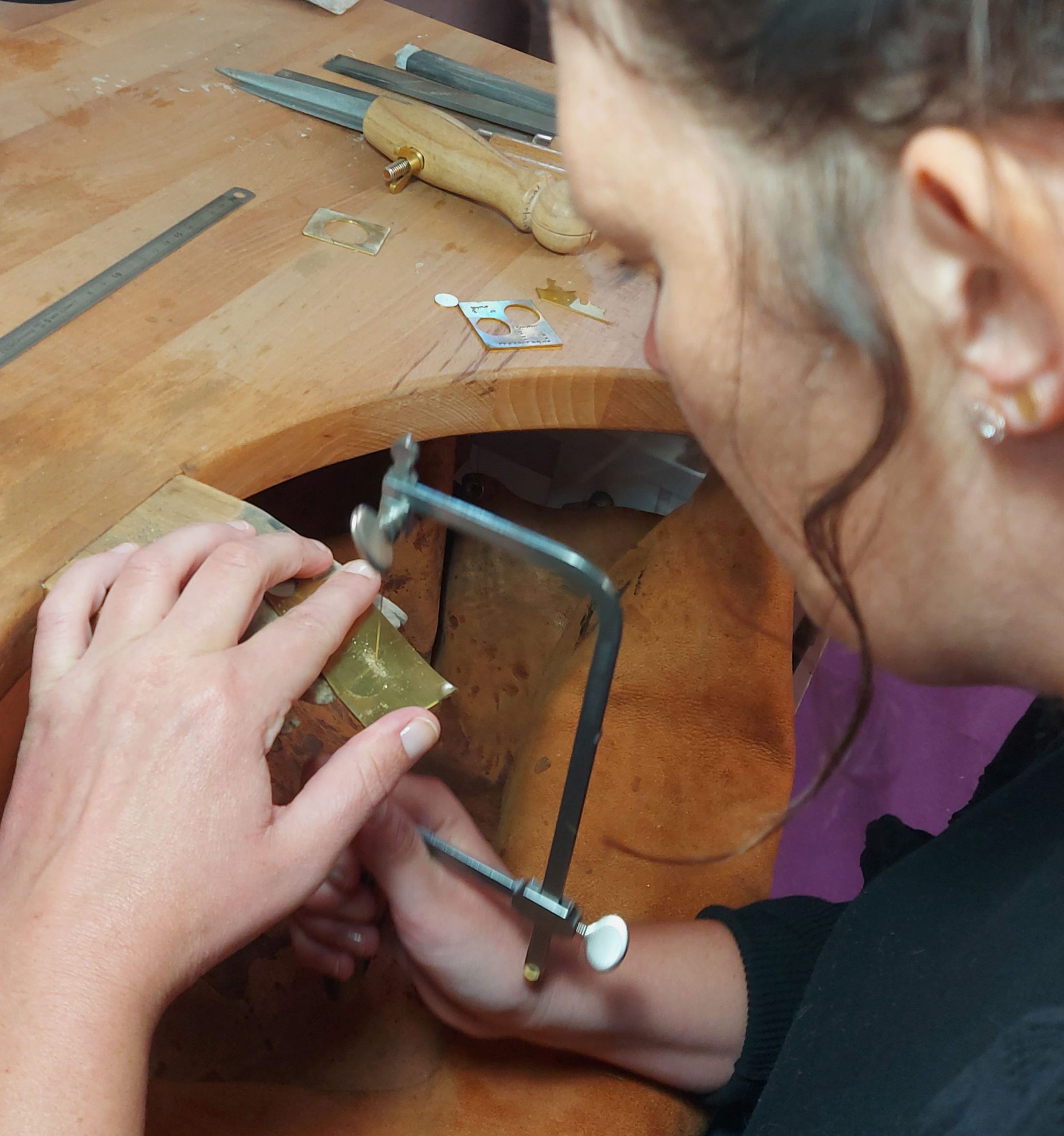 Avec des bouterolles et des poinçons vous créerez votre motif unique selon votre goût et inspiration. A cette étape, vous personnaliserez réellement votre bijou.